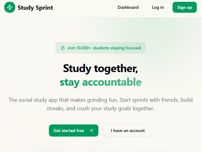 The social study app that makes grinding fun. Start sprints with friends, build streaks, and crush your study goals together.