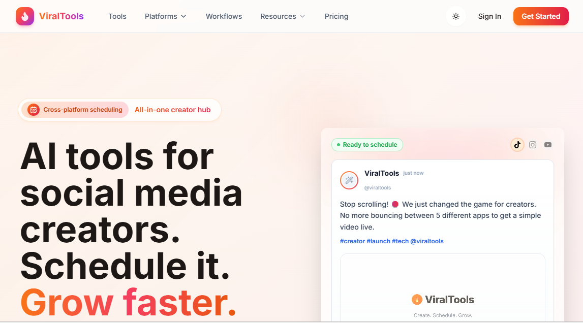 AI tools for social media creators. Schedule it. Grow faster.